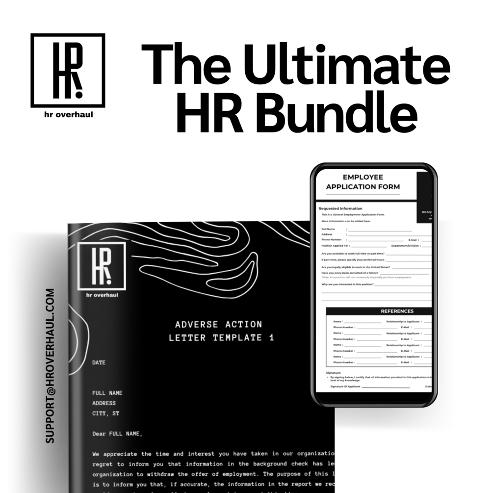© 2023 HR Overhaul. All rights reserved. No part of this document may be reproduced, distributed, or transmitted in any form or by any means without the prior written permission of the copyright owner. This applies to modification, adaptation, rearrangement, or transformation of this document, even if seemingly minor Exceptions are made for brief quotations in critical reviews and specific noncommercial uses permitted by copyright law. Unauthorized reproduction or resale is strictly prohibited.